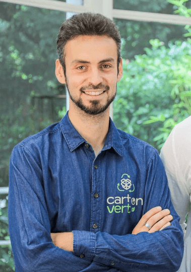 Un duo fondateur complémentaire avec Romain Dupuis (entrepreneur) et Antonin Hameury-Hao (stratégie et politique européenne) à la tête d’une équipe engagée de 20 personnes ayant fait de Carton Vert le leader français du réemploi de carton.